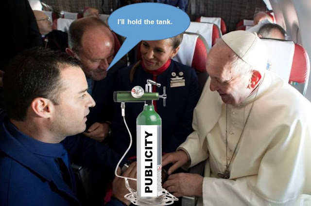 But the really telling thing about the whole airplane disaster, the first disaster of his trip, but clearly not the last, was how revealing it was of the Pope's craven need for ongoing publicity and just how willing those around him are to indulge him in what is becoming a dangerous pitfall in this pontificate, undermining not only the Church's credibility, which it is clear Francis cares not too much about, but his own, yes, even in the eyes of the media.
